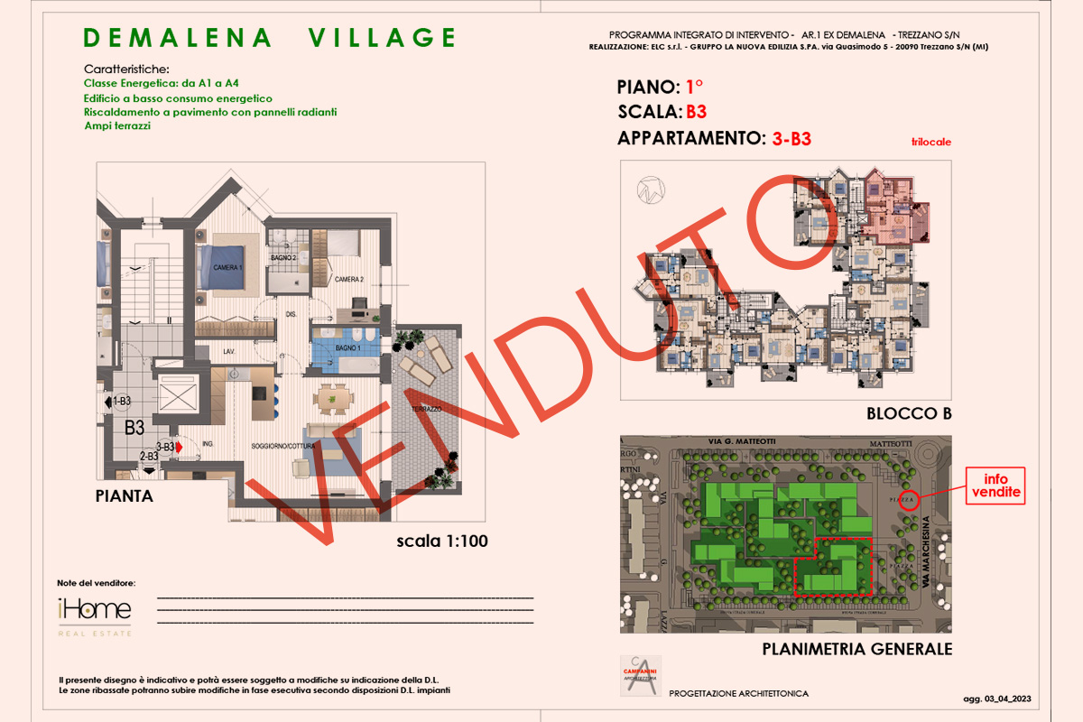 Appartamento di tre locali così composto: ingresso, soggiorno con cucina a vista, ampio terrazzo, disimpegno, lavanderia, due camere, doppi servizi e cantina. Possibilità box auto.